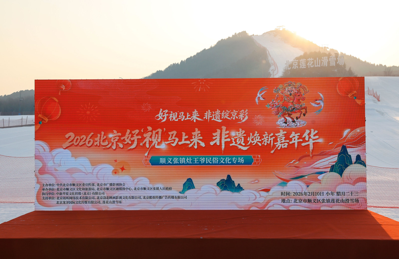 2026年2月10日(农历腊月二十三),以张镇市级非遗 “灶王爷传说”为核心的“2026 北京好‘视’马上来 非遗焕新嘉年华 —— 灶王爷民俗文化专场”在莲花山滑雪场盛大启幕。 本次活动是北京市广电局主办的2026年“北京大视听·春天马上来”系列活动之一,该活动由中共北京顺义区委宣传部、北京市广播影视协会共同主办,顺义区文旅局、顺义区融媒体中心、张镇党委政府承办,依托“北京大视听+文商旅体”全业态融合模式,不仅让传统灶王文化焕发新生,更成为北京16+1区文旅协同发展的生动实践,为培育文化新质生产力提供“民俗+”示范样本。